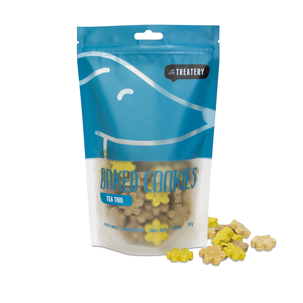 Your pup's favorite herbal brews, now baked into a treat. Our Tea Trio Baked Cookies bring together three herbal blends, Calming, Energizing, and Immunity, for a gentle, natural way to support your dog's daily wellbeing.
