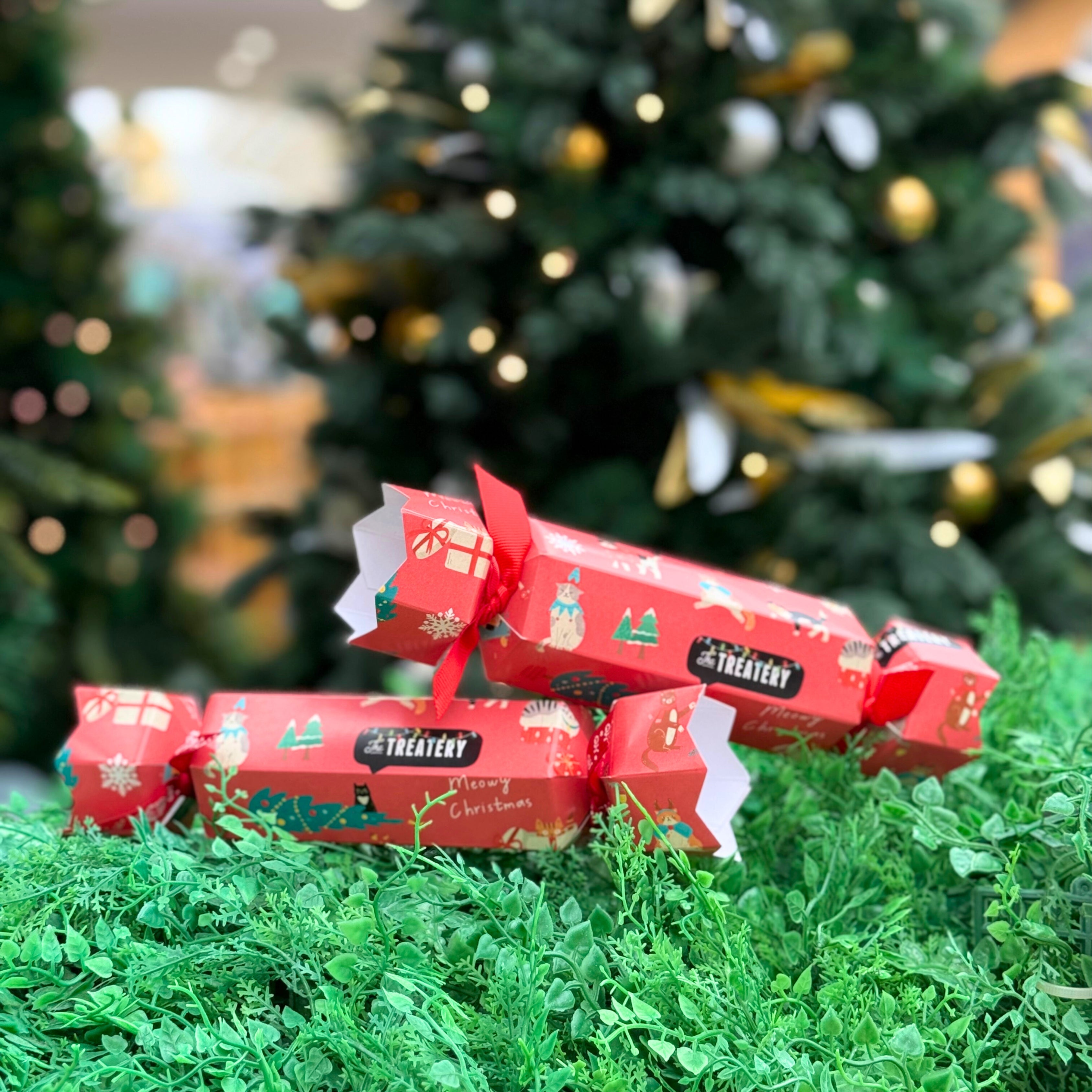 Unwrap the purrfect holiday surprise for your cat with The Treatery's cat treat Bon Bon! Packed with single-protein dehydrated treats, a cute mini Santa hat, a kitty-approved joke, and a special gift, it's a festive feast without the noisy 'bang'.