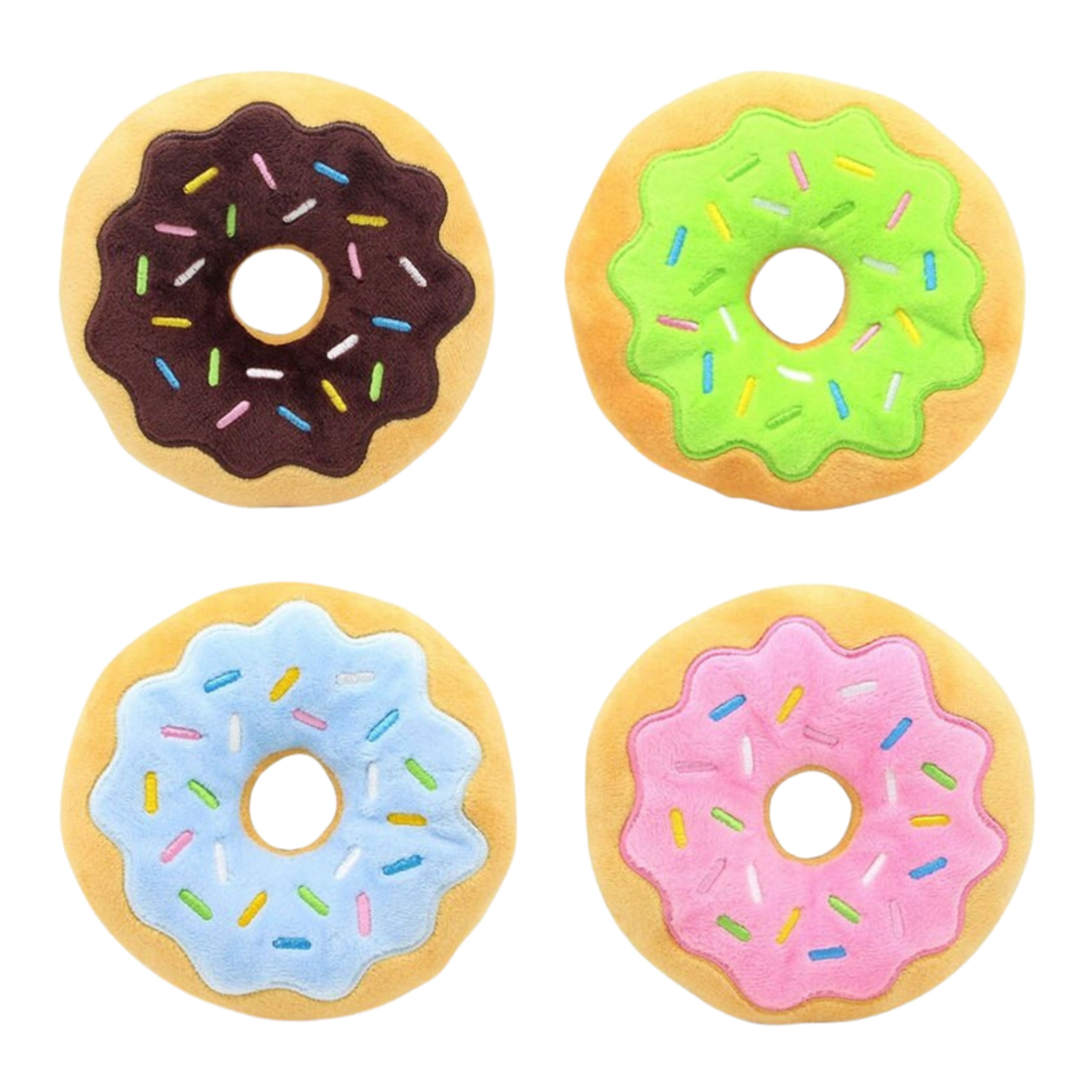 This plush donut dog toy is a sweet addition to your pup’s toy box. Made from soft fabric with colourful embroidered sprinkles, it’s gentle on mouths and perfect for light play, carrying and cuddling. The built-in squeaker keeps dogs engaged without being overstimulating, making it ideal for everyday enrichment and indoor playtime.