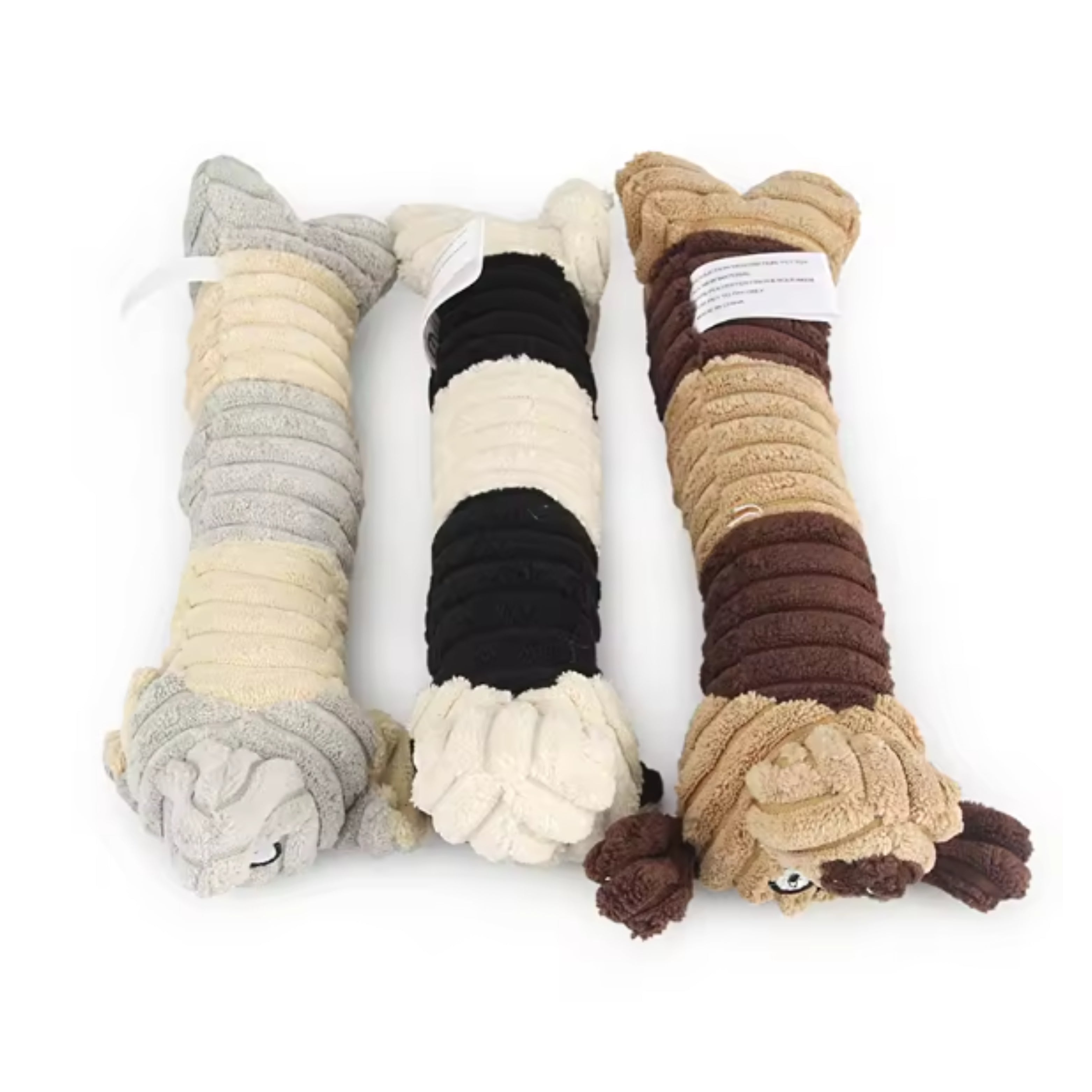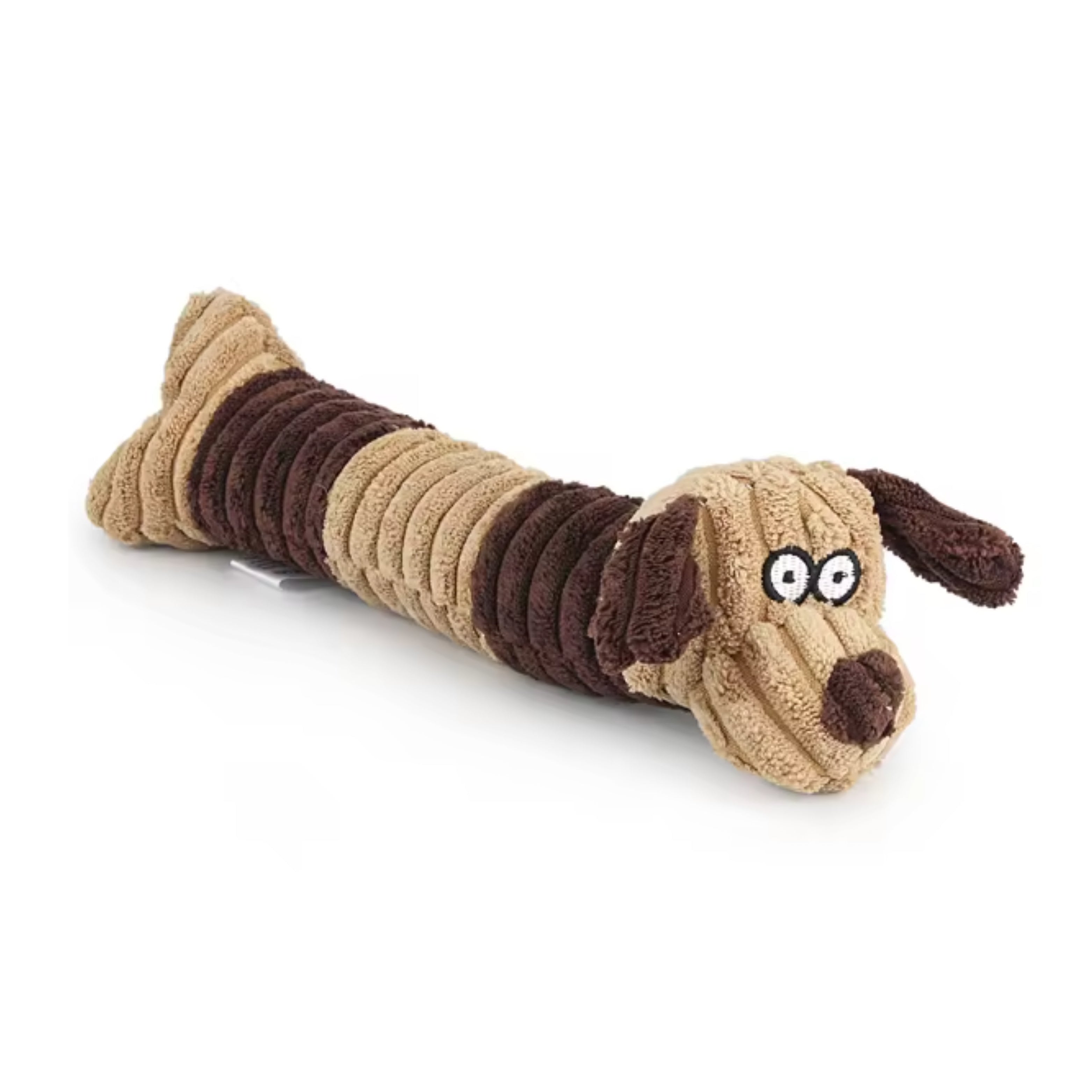 These long body plush dog toys are designed for dogs who love to carry, shake, and parade their toys around the house. With an elongated shape that’s easy to grip and soft plush cord-style fabric, each character offers engaging play while being gentle on mouths. Available in Elephant, Cow, or Dog designs, they’re perfect for interactive play, solo fun, or comfort cuddles between play sessions.