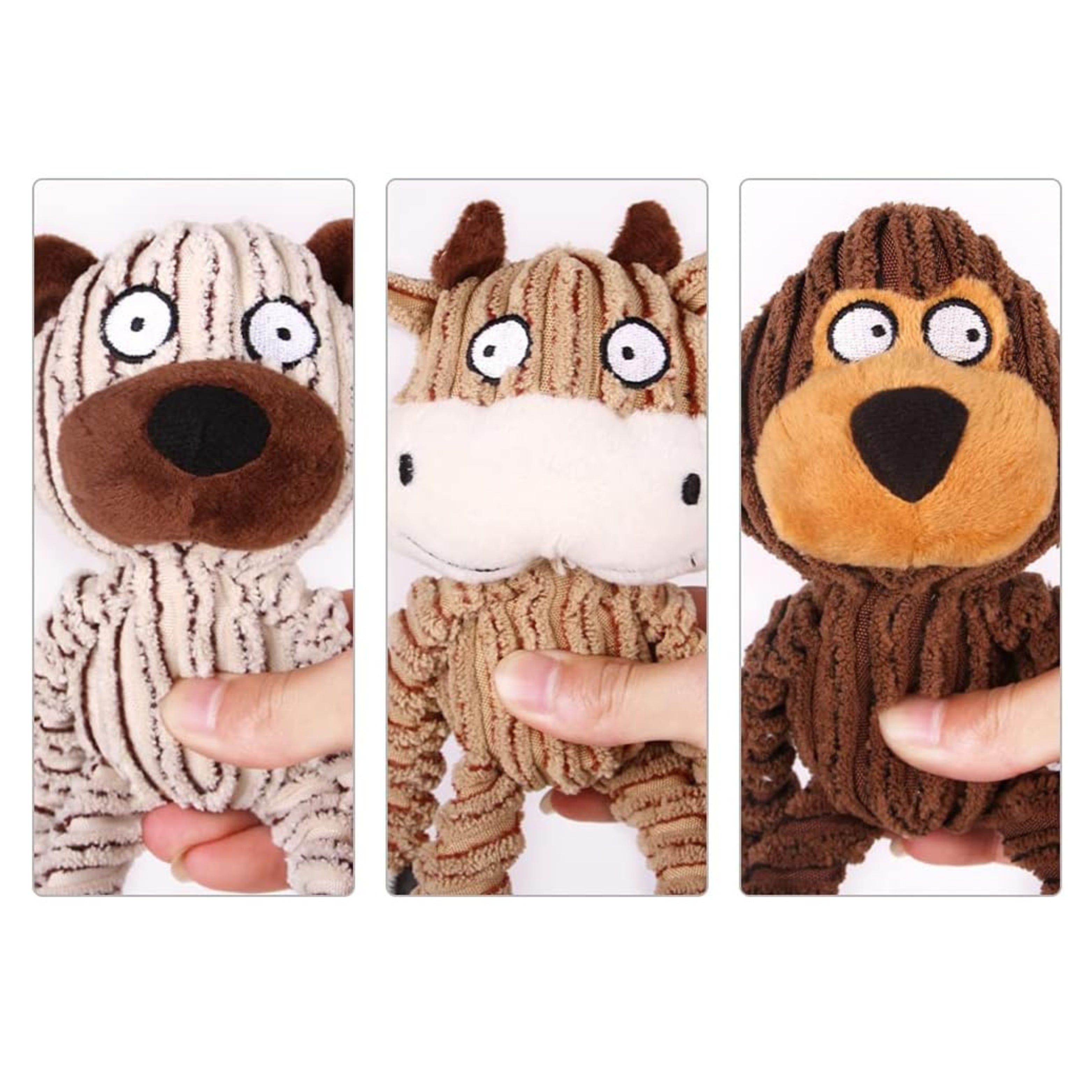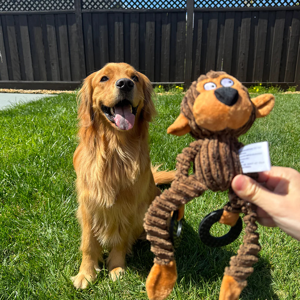 Meet the Plush Ring Animals Friends, a playful trio designed for dogs who love to chew, tug, and cuddle. Each soft, textured plush features built-in rubber ring grips for satisfying chewing and easy carrying, making them perfect for interactive play or solo fun. With their floppy bodies and friendly faces, these toys are just as great for snuggling as they are for playtime.