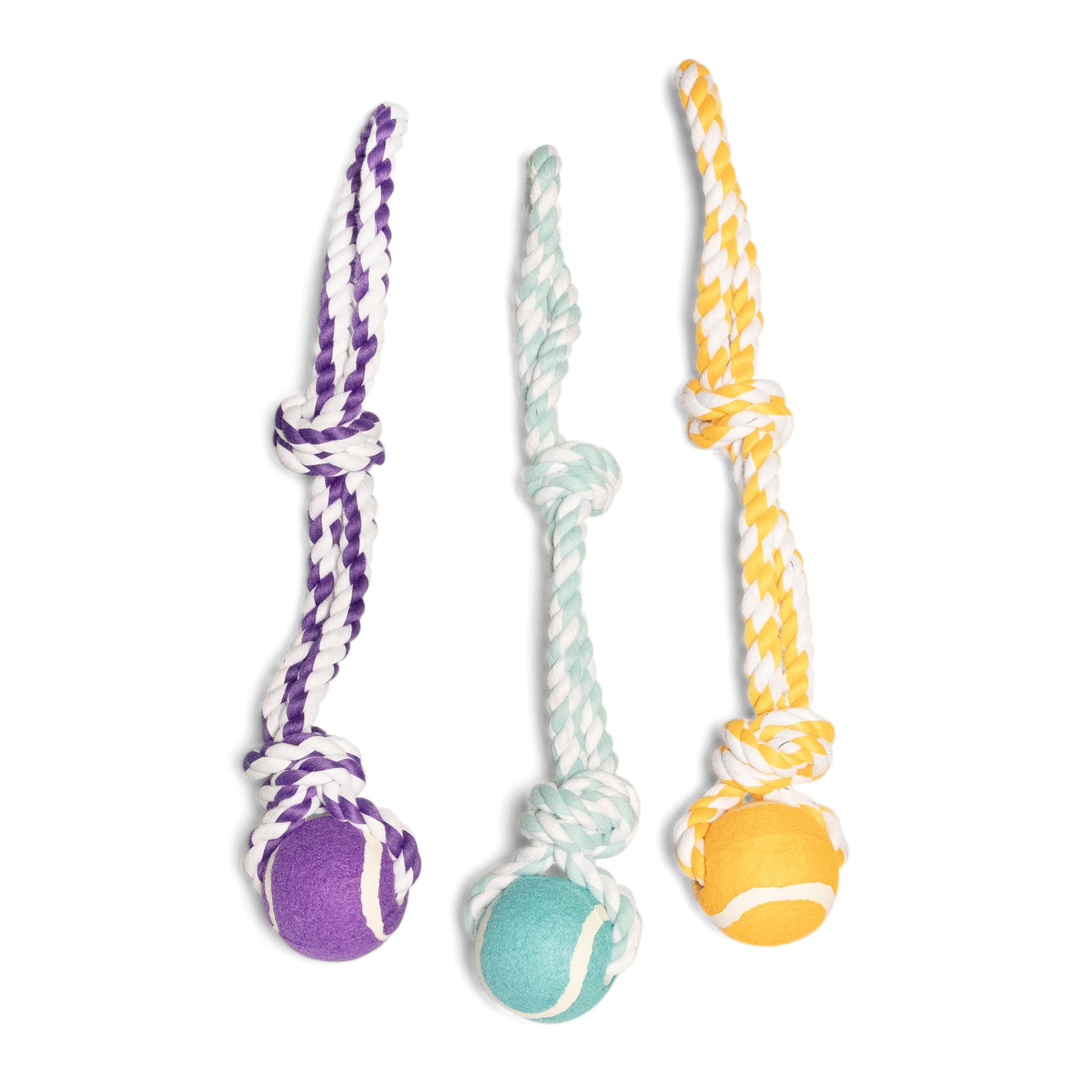 The Rope Tennis Ball Double Knot Tug Toy combines tug, fetch, and chew play in one durable design. Featuring strong twisted rope and a built-in tennis ball, this interactive toy is perfect for games of tug-of-war, chasing, and solo chewing, helping keep your dog active, engaged, and mentally stimulated.