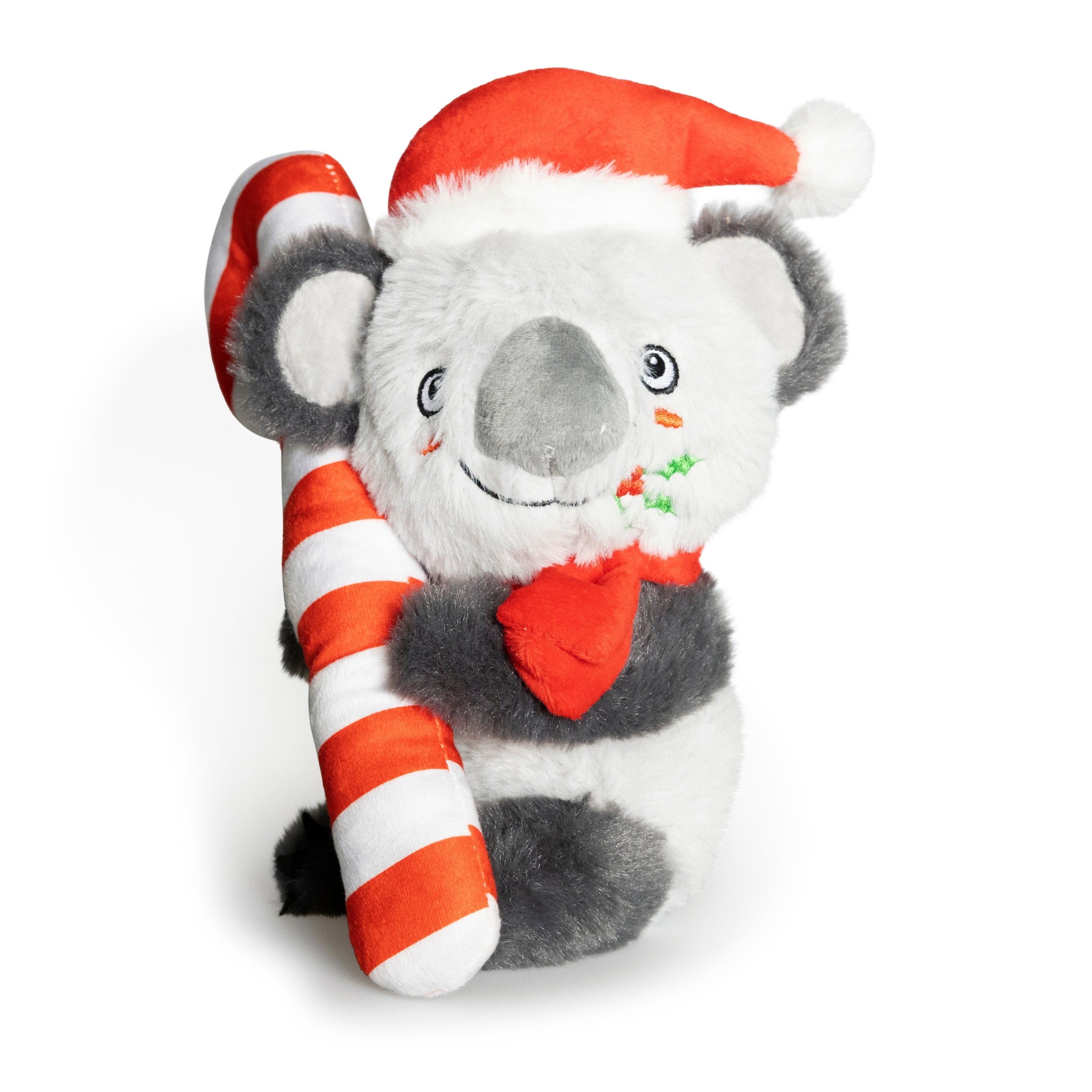 This cuddly koala has traded eucalyptus for Christmas cheer, and a giant candy cane! Soft, squeaky, and irresistibly cute, it’s made for festive fun and snuggly naps after playtime.