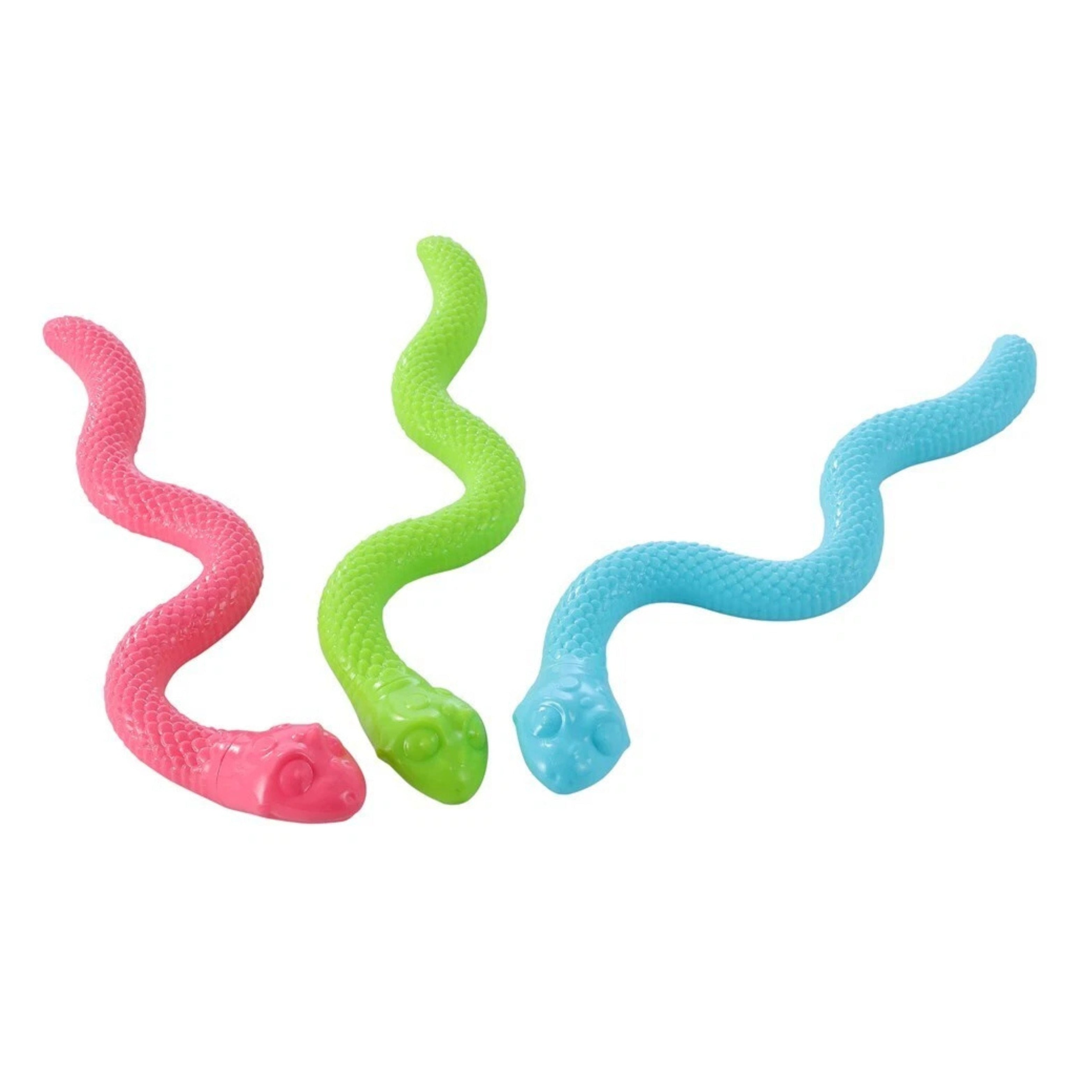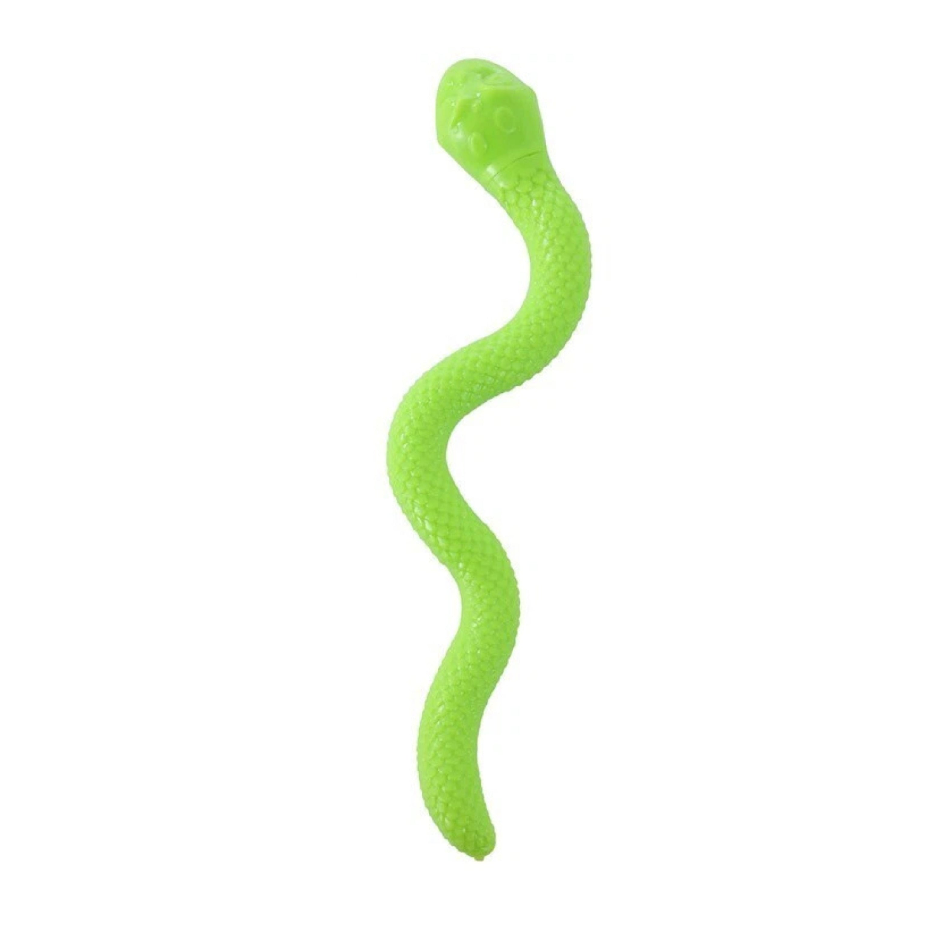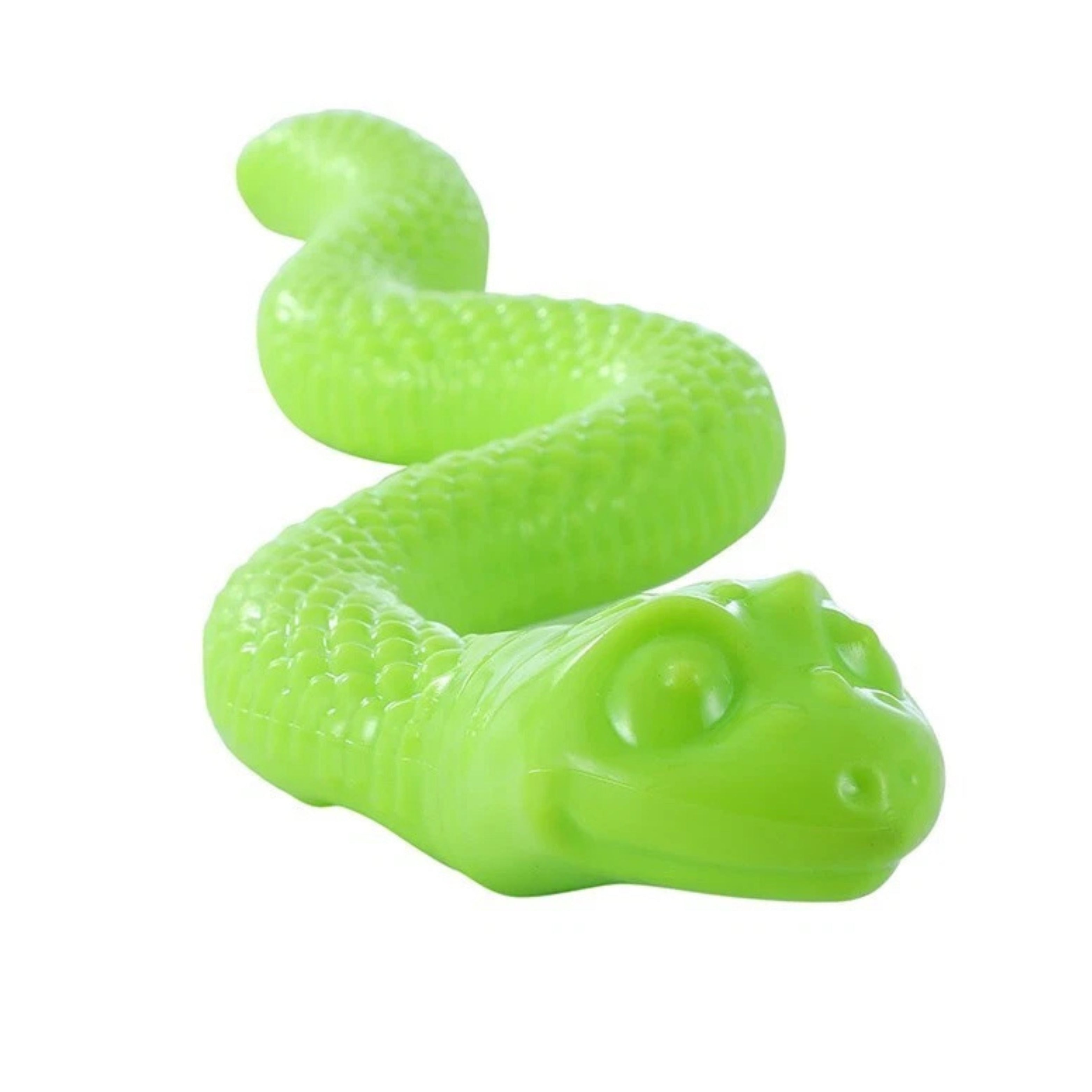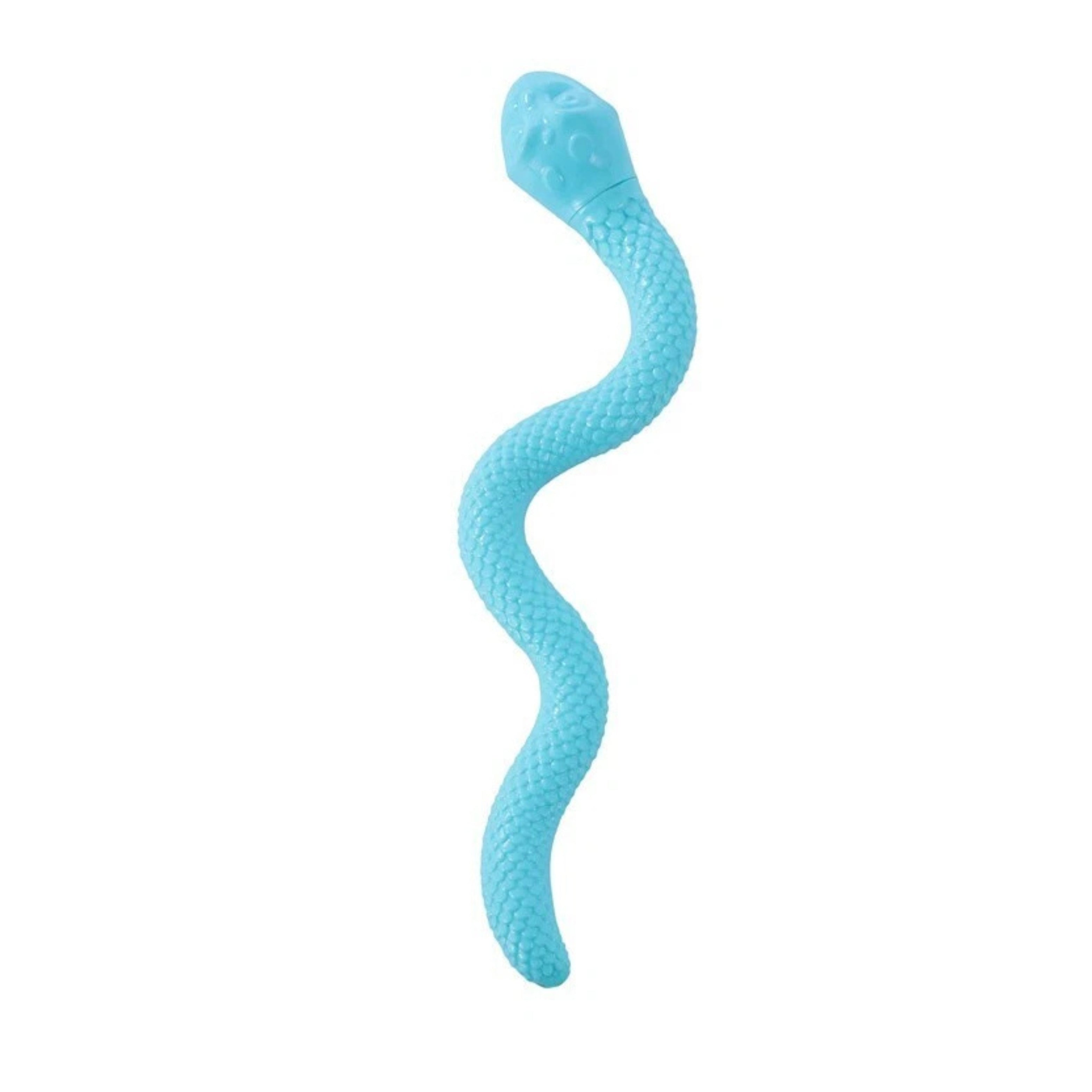 The Vinyl Flexi-Snake Dog Toy is a durable, flexible enrichment toy designed to keep dogs engaged through chewing, tossing, and interactive play. Made from strong, non-toxic vinyl, it features a loud squeaker in the head for added excitement, plus a textured, bendy body that satisfies natural chewing urges. The hollow design allows treats or spreads to be added for longer-lasting boredom-busting fun.