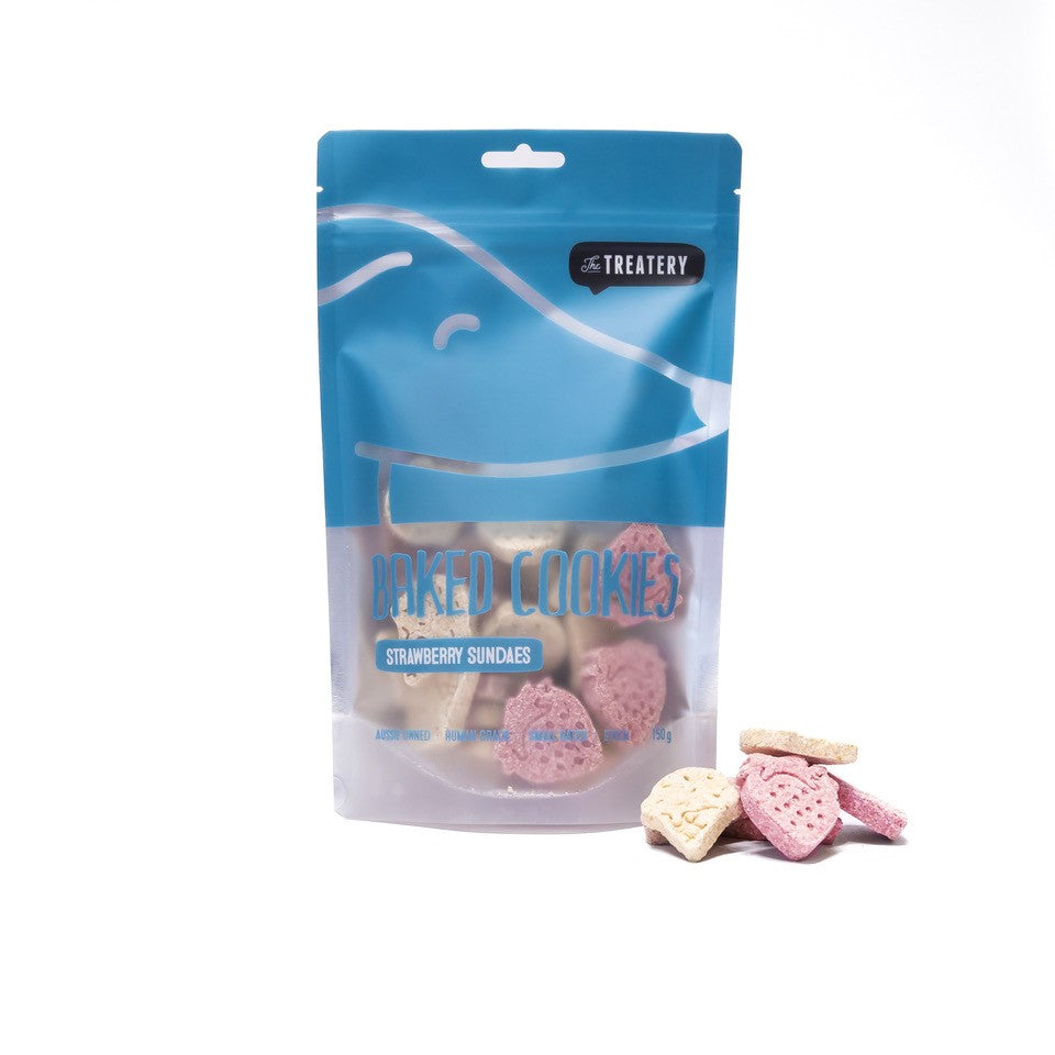 Strawberry Sundae cookies make treat time fun, packed with all the goodness your dog needs for a healthy and happy tummy. Easily digested with natural dietary fibre, our summer sundae treats are suited to dogs with stomach sensitivities, these fun treats contain naturally occurring enzymes which aid in tooth whitening.