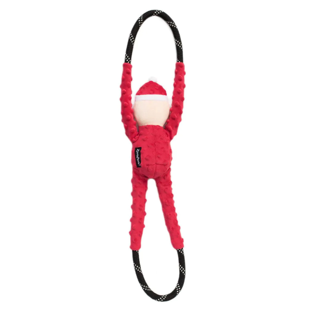 The ZippyPaws Holiday RopeTugz Santa combines festive plush with serious strength. Designed with the same durable, mountain-climbing rope used in ZippyPaws’ Climbers leashes, this toy can handle enthusiastic tug sessions from medium and large dogs. Santa’s soft plush body contains a large squeaker for extra excitement during play, while the looped rope design gives you and your dog plenty of grip.